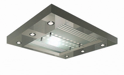 中間幾何圖案配有機(jī)玻璃加兩側(cè)簡燈設(shè)計,是吊頂富有現(xiàn)代感