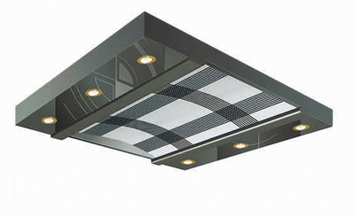 中部是影像拱頂,兩側(cè)為不銹鋼底板上輔以簡(jiǎn)燈的柔光照明設(shè)計(jì)。